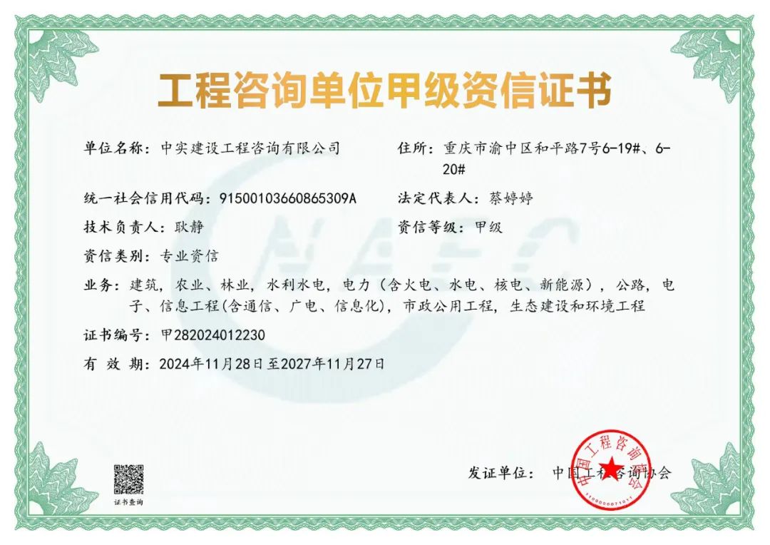 榮耀再續(xù) 賦能增效|中實咨詢獲批工程咨詢單位甲級資信